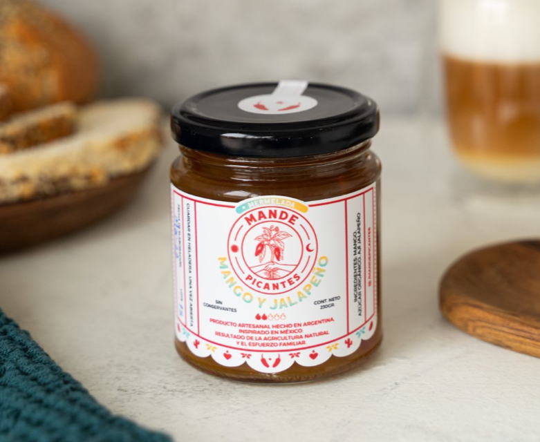 ![]() | Mermelada de Mango y Jalapeños Orgánica Mande Picantes – x230grs Textura con trozos de fruta a la vista, color naranja con pintas rojas, aroma dulce y tropical,