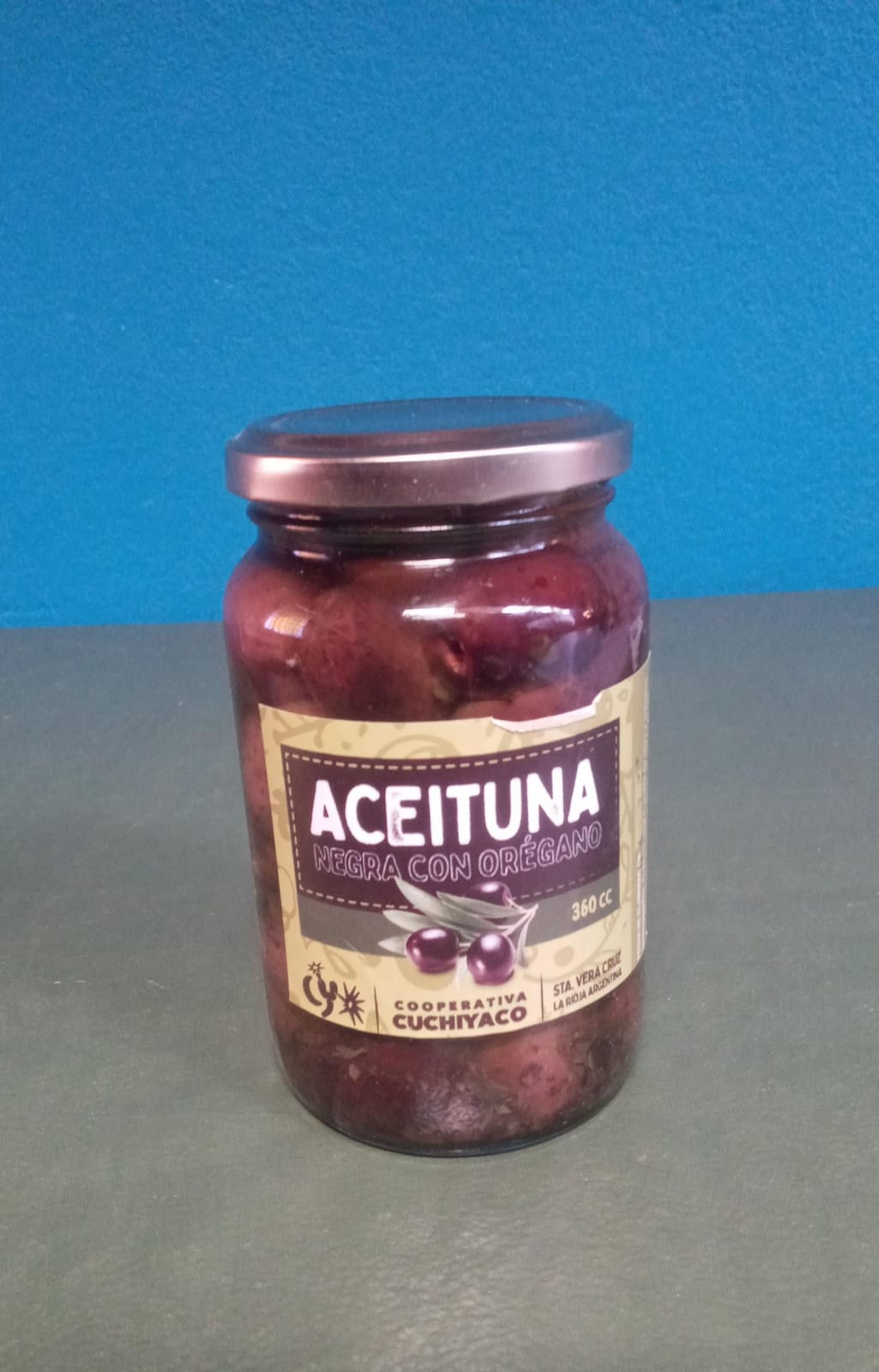 / Aceitunas Verdes en aceite de oliva con Orégano x360grs. Coop. Cuchiyaco