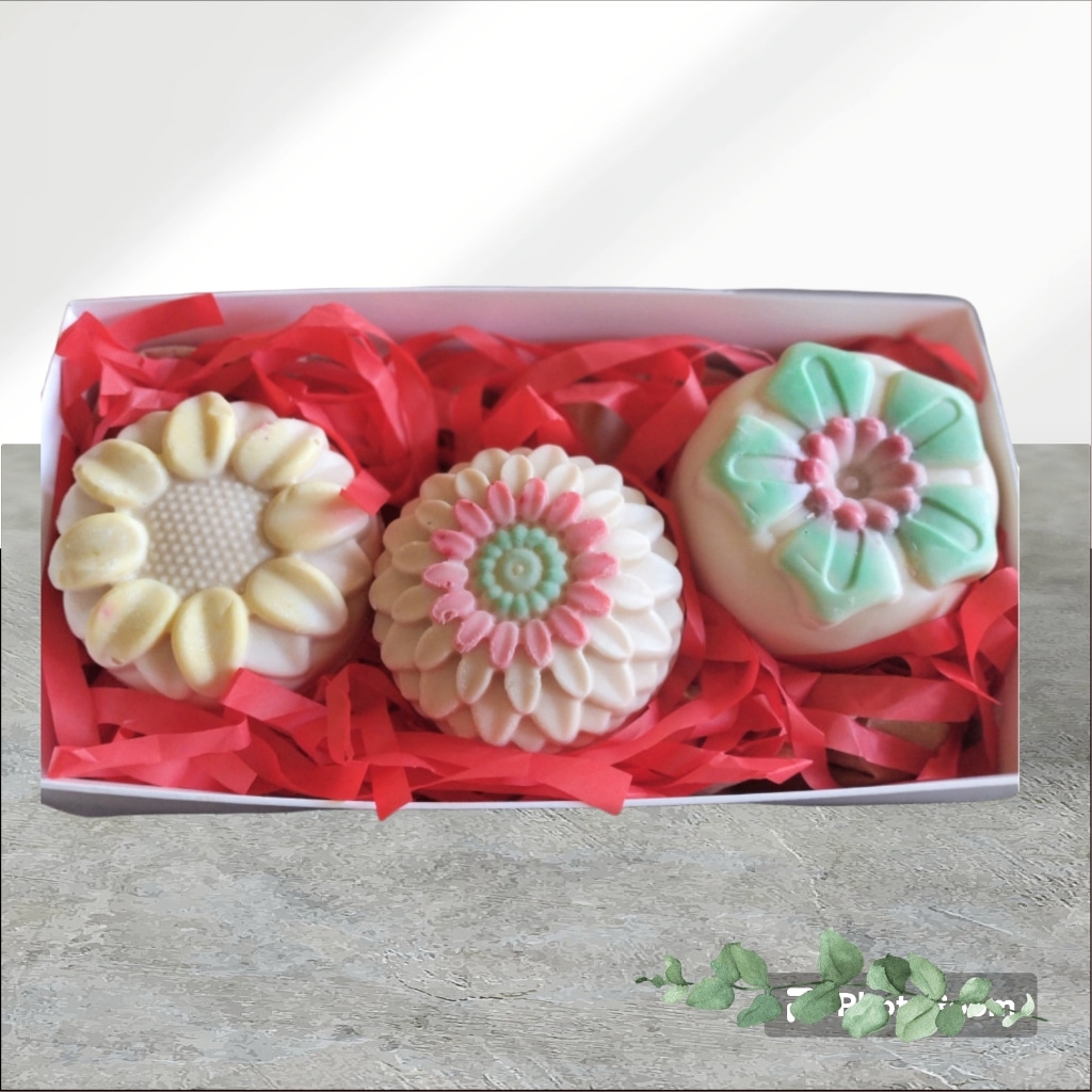 Descubre el Box Alegría, una cajita especial que contiene tres jabones de glicerina a tu elección, perfectos para cuidar la piel y brindar una experiencia de limpieza única.