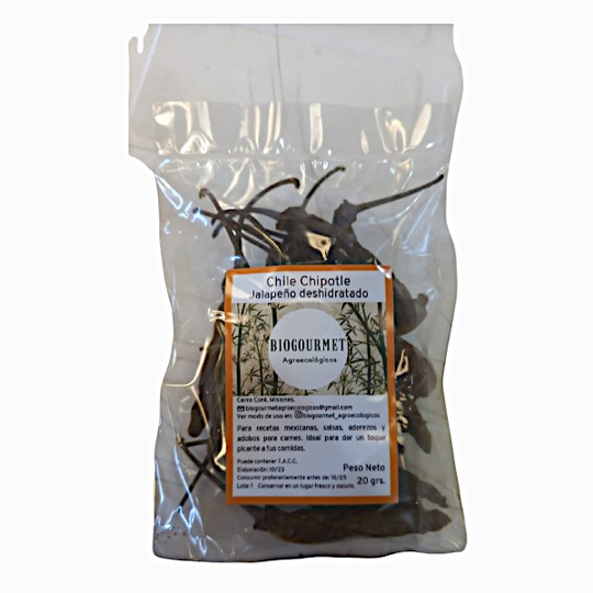 / Chile Chipotle Agroecológico Deshidratado x20grs. BIOGOURMET