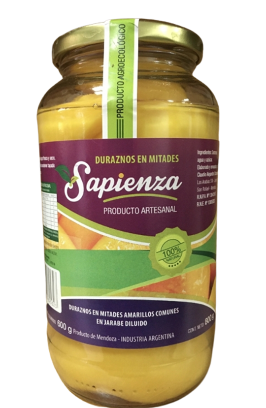 / Duraznos en almibar Sapienza Frasco Vidrio x800grs