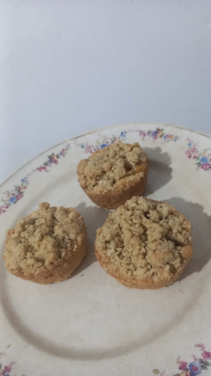 Crumbles de manzanas orgánicas con harina de nuez, harina integral, y azúcar mascabo y crocante de nuez. Ideales para toda la familia, un recreo o merienda, como porción individual de 6 cm de diámetro. Disfrutalas en el momento o las podés frizzar e ir sacando para la semana ♡