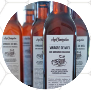 Vinagre nutritivo, sin pasteurizar. Producto de la fermentación acética del alcohol de la hidromiel. Botella de vidrio.