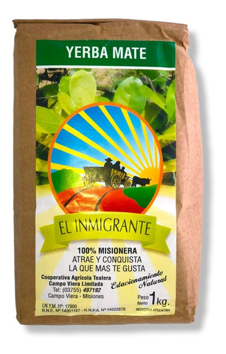 / Yerba Secado Natural El Inmigrante x1kg